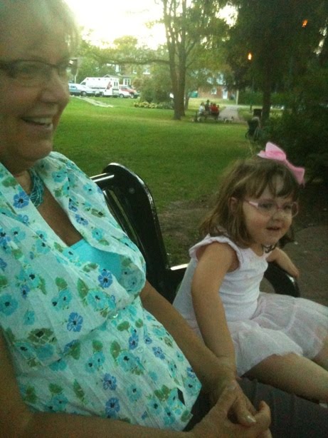 My mum and my Jelly. My parents live in a little itsy bitsy town that is so damn cute, they have free weekly concerts in the park in the center of town. It's one block from my parents' place. We walked over one lovely evening and enjoyed some music. Things like this make me really miss living in town. And, you know, Canada, where you can sit outside in August and not pray for death because of suffocating heat.